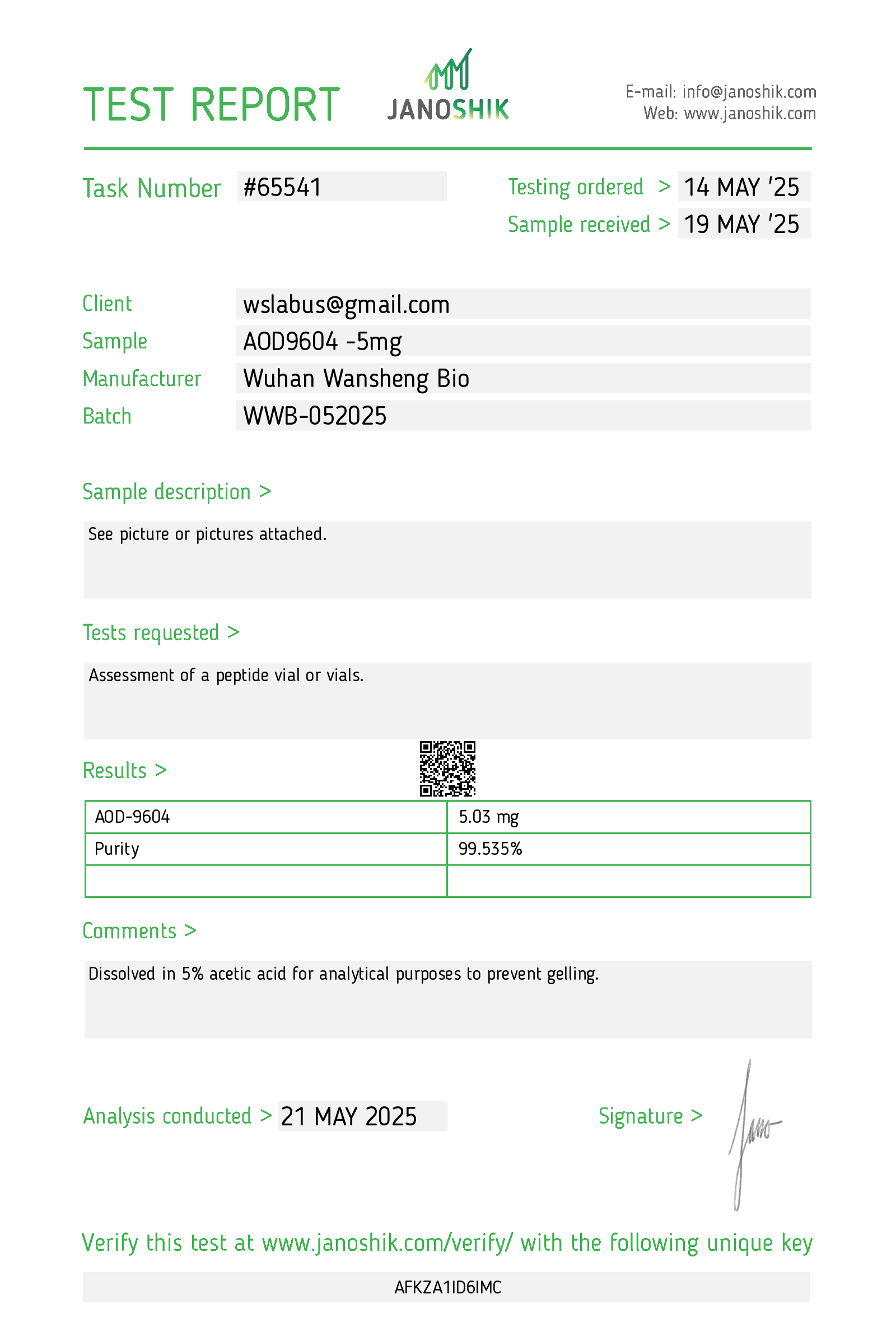 AOD9604 (Anti-Obesity Drug) is a modified version of the hGH fragment 176-191 peptide (contains a di-sulfide bridge) and thus a derivative of human growth hormone (hGH). Originally developed as a lipolytic (fat burning) compound, AOD9604 has shown benefit in studies of heart disease, osteoarthritis/cartilage repair, and metabolic syndrome. AOD9604 stimulates lipolysis (the breakdown or destruction of fat) and inhibits lipogenesis in animal studies.